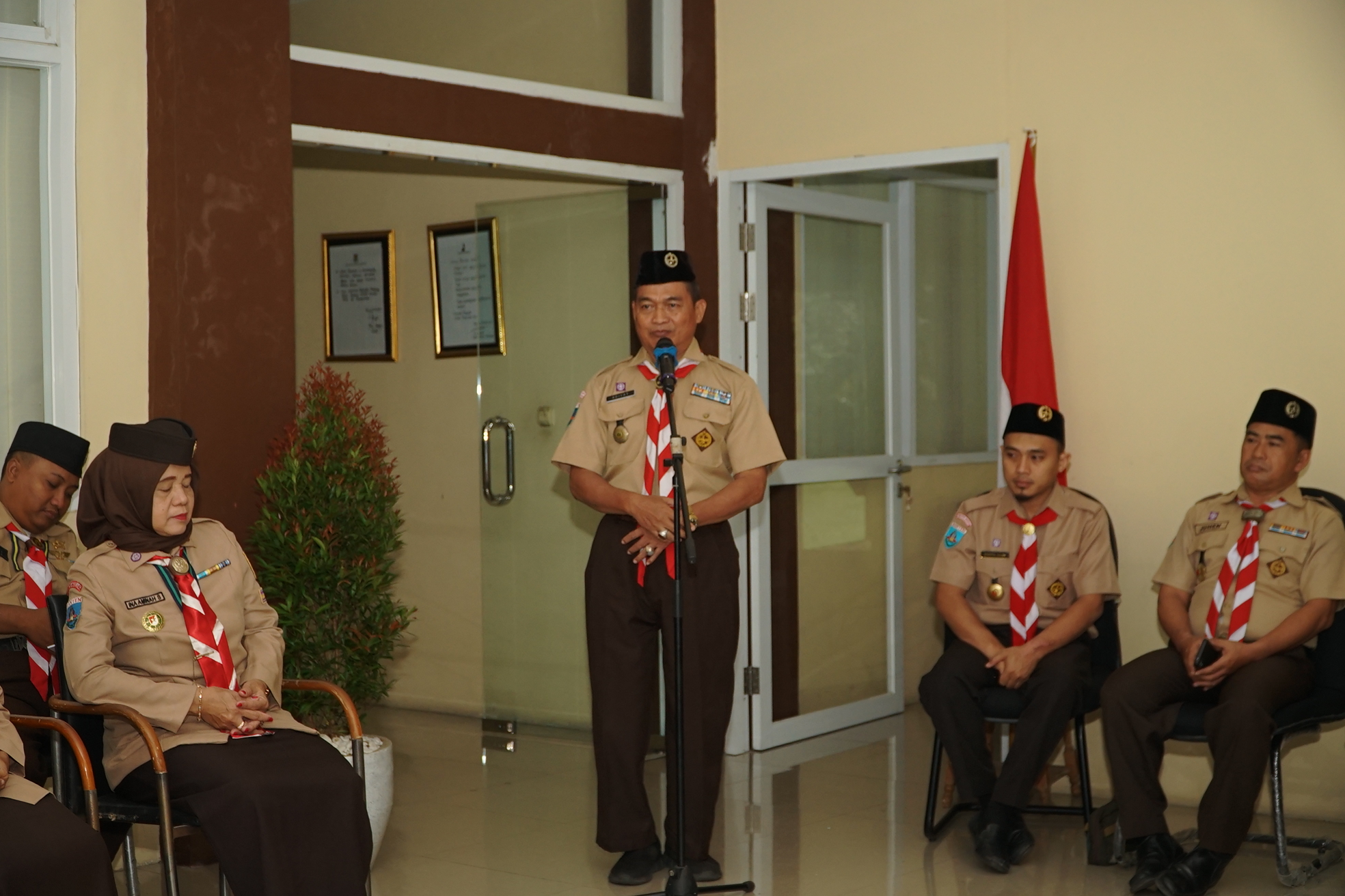 Ketua Kwarcab Tangerang, Kak H. Adiyat Nuryasin, didampingi Sekretaris Kwarcab, Kak Dadang Sudrajat, beserta jajaran Andalan Cabang dan Anggota Pusdiklatcab menyambut langsung kehadiran tim penilai dari Kwartir Daerah (Kwarda) Banten.
